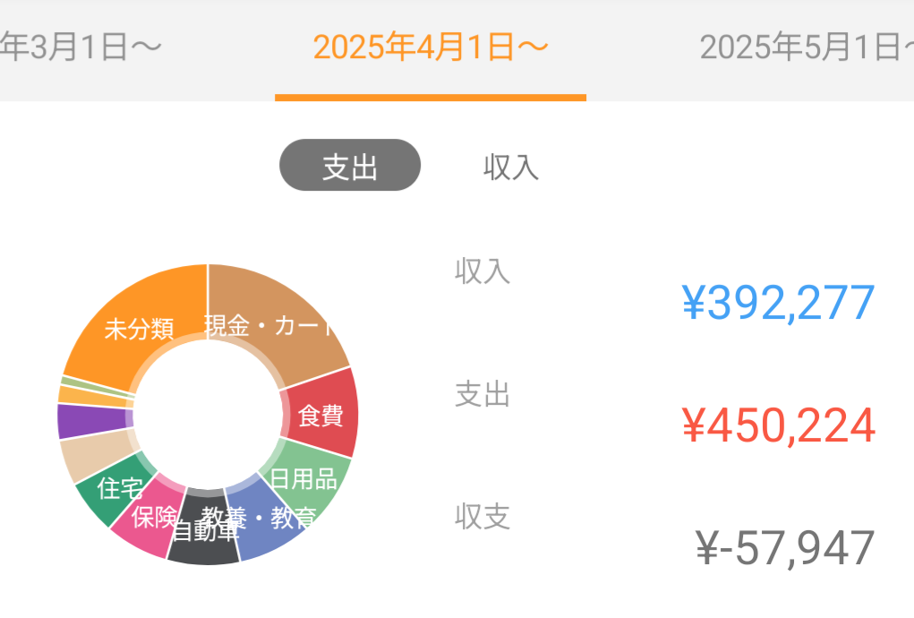 4月の支出が45万円と、もんのすごく出費していたところから